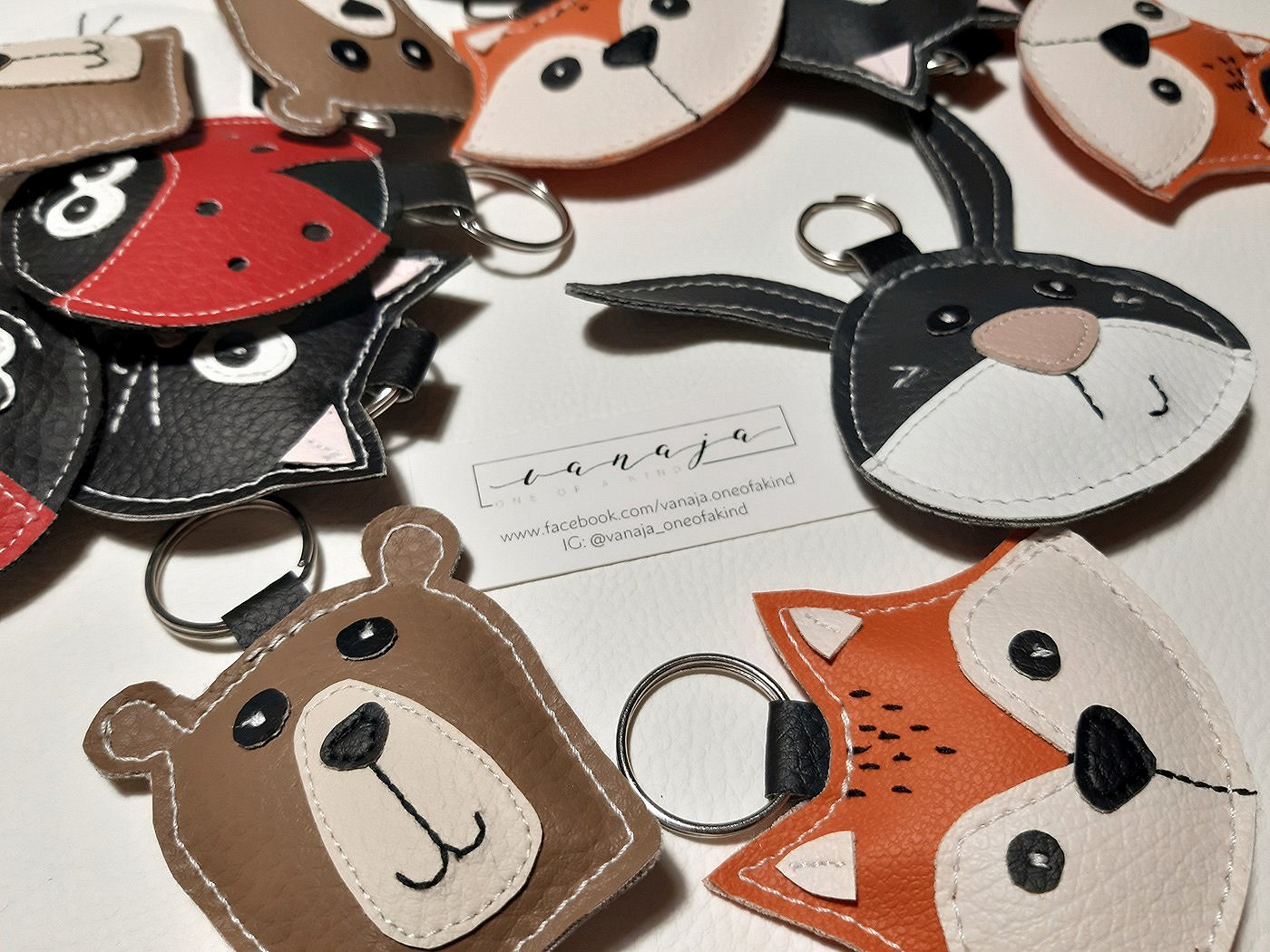 Na stojnici boste našli šivane izdelke, večinoma sešite iz umetnega usnja.