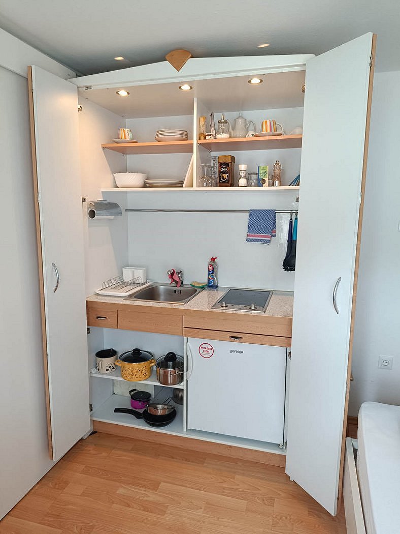 - Studio (2 Personen) hat eine Küchenzeile, ausgestattet für zwei Personen.