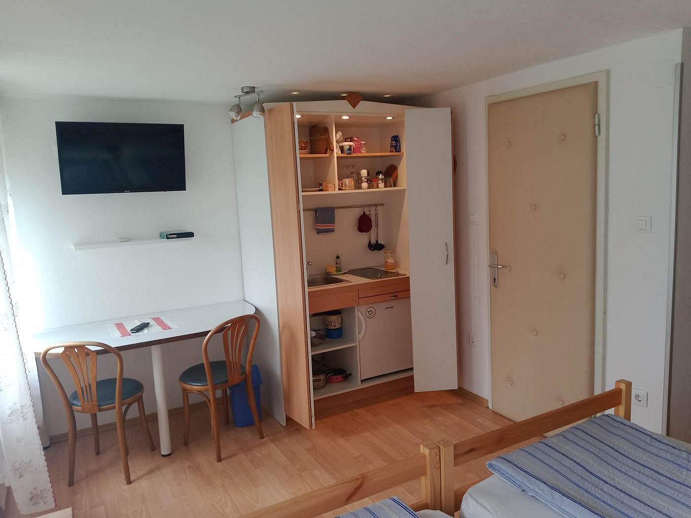 - Zimmer 2 (2 Personen) hat eine Küchenzeile, ausgestattet für zwei Personen.