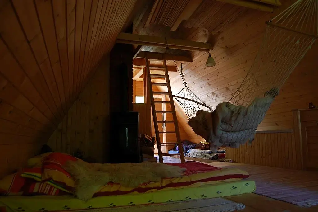 The spacious mountain hut can sleep up to 6 people. In winter, you can warm up in the house with two wood-burning stoves. Two kitchens can cater for even the hungriest of appetites.The cosy interior will immediately make you feel at home and yet far away from the madness of the modern world. Spend your best time together with your closest friends or family. The interior is divided into several different rooms, which are interconnected without doors. The solar-powered electricity is sufficient for basic needs, but not enough for hot water. In summer, a solar shower can be used. Either way: candles make for romance.