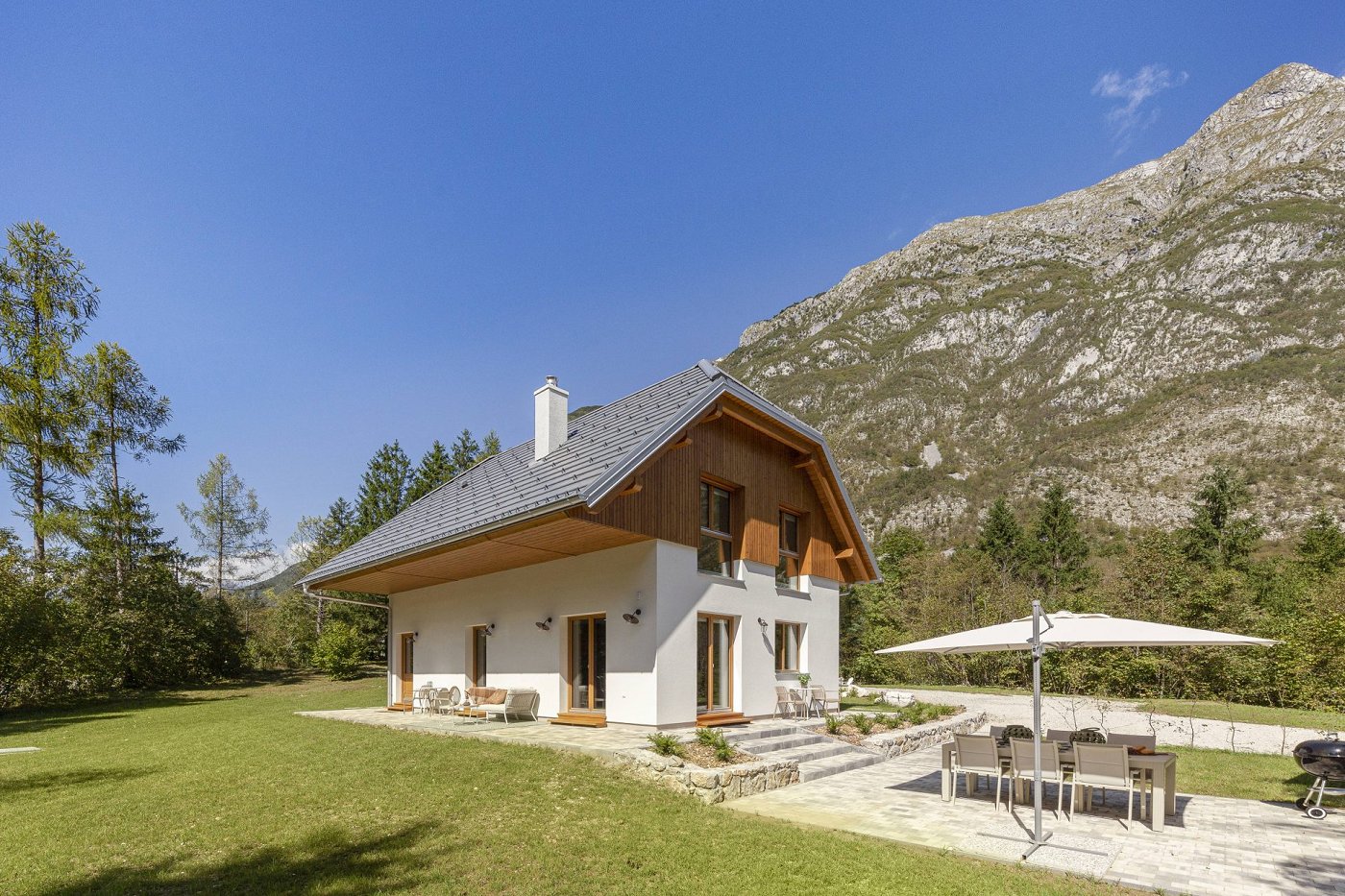 Velik vrt, terasa in žar (BBQ).