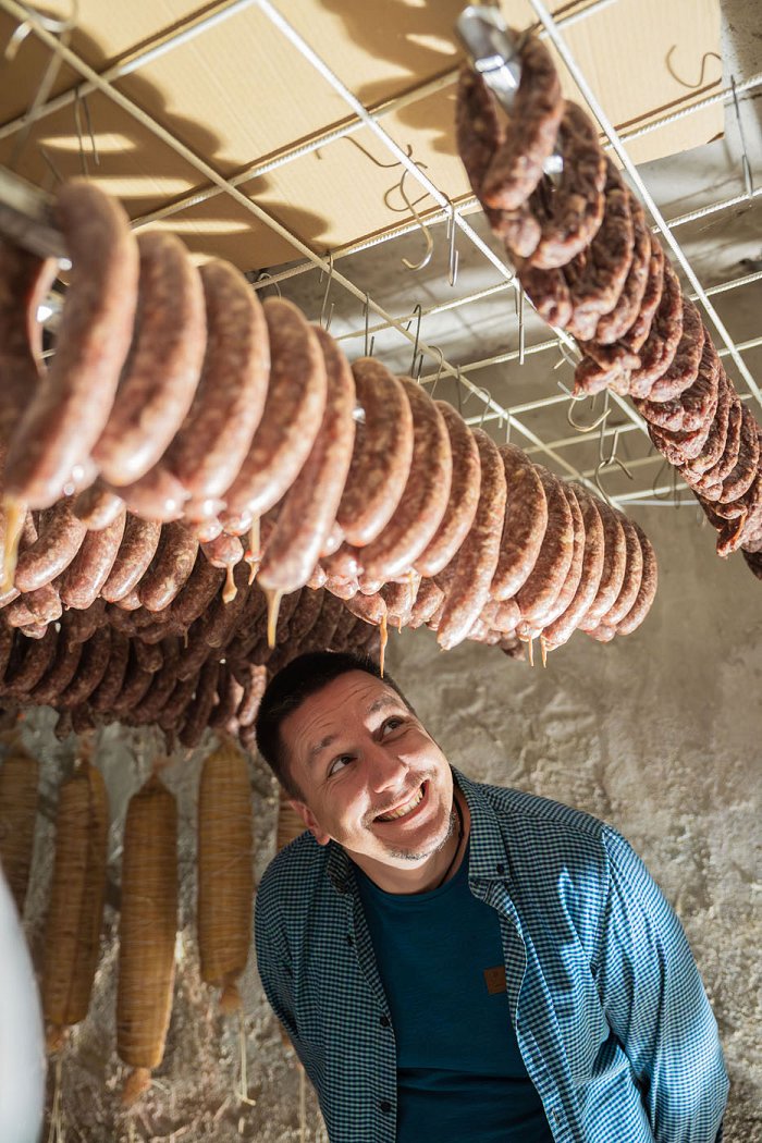 Spoznavanje s tradicionalno sonaravno predelavo svinjskega mesa, zorenjem v 300 let stari kleti in sprejemanja in uživanja prave hrane/specialitet.